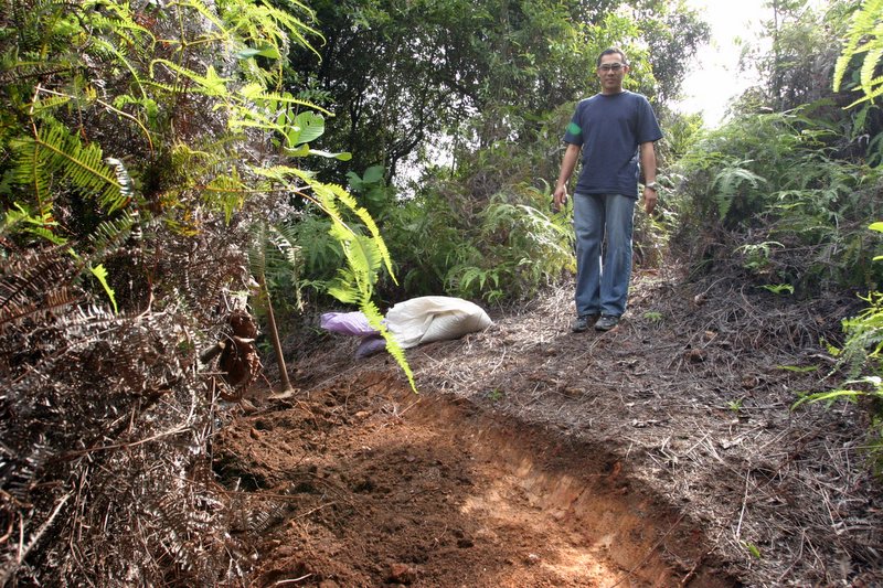 Alvin and Liyana together with 4 other labour force, get things going by looping the top of the hill back to the original trail.