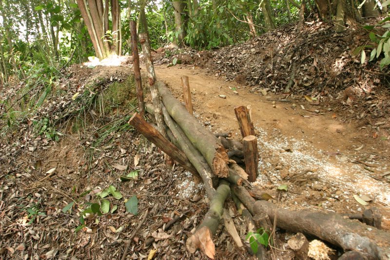 RenHao and me took the chance to finish the berm needed to rail riders down the gulley after the big bridge. We are lucky to find fallen trunks that curve to the berm, making our live very much easier.