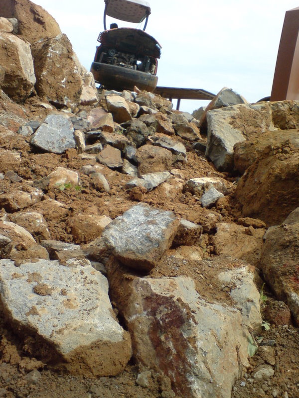 the rain came down just as we started and it certainly ain’t the best condition to move rocks.