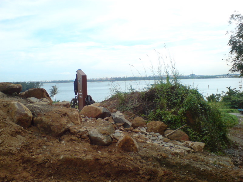 Max, Joey and me got the stuff working with our one Burmese worker. We placed big anchor rocks around the various sections, and line the bigger ones on the side so to form the riding boundary.
