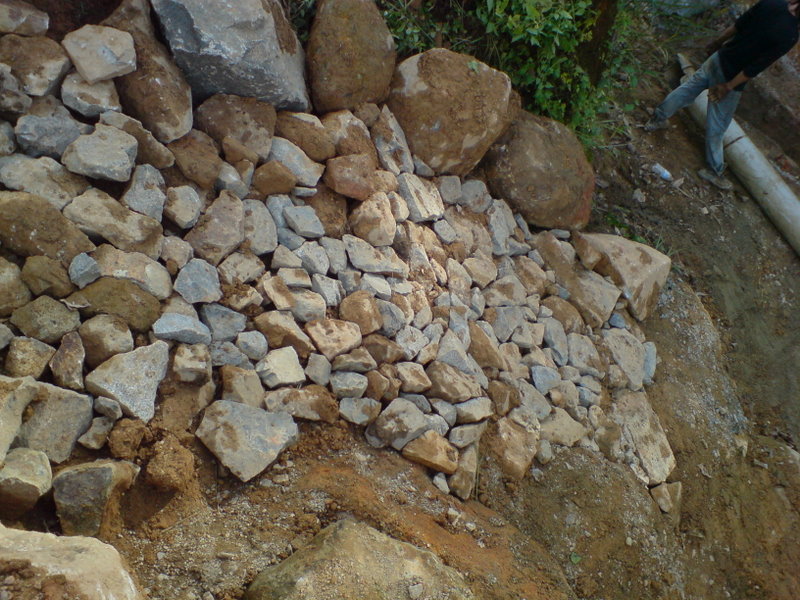 With Hwa excavator harvesting rocks for the past 3 days so we can start off this section, we work our way down by doing anchoring steps each time so to hold each subsection independently.