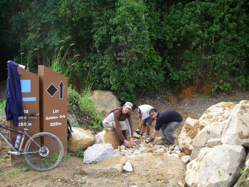 What we are here to fix is a black diamond section singletrack rock garden, and to place some interesting rock feature, ‘high skills low risk’ stuff, so to make it flow for the better half of the riders and endless funs and tries for those who are still trying to.
